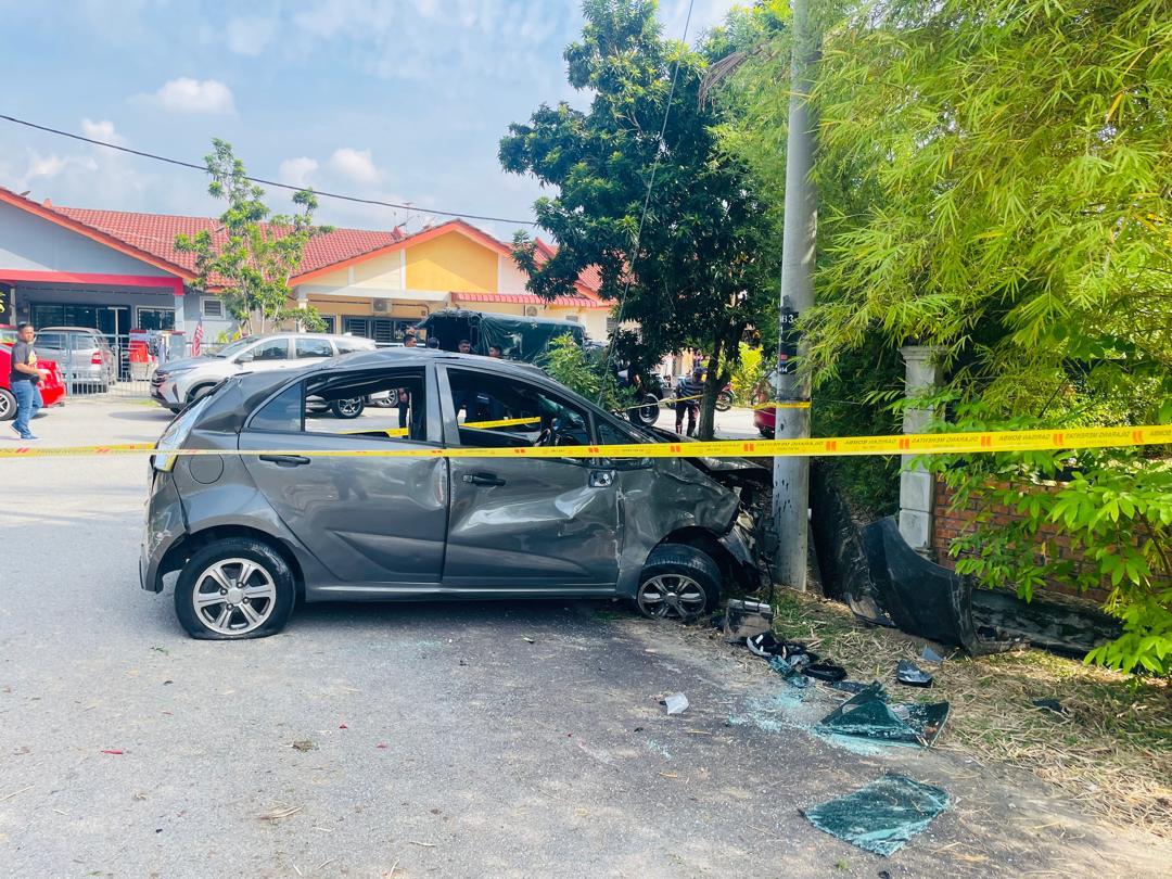 “Apabila tiba di lokasi kejadian dipercayai pemandu kereta telah gagal mengawal kenderaannya dan masuk ke laluan bertentangan seterusnya melanggar pagar besi di bahu jalan cerun bukit yang berketinggian lebih kurang 10 hingga 15 meter sebelum terjatuh kereta terbalik ke kawasan taman perumahan Taman Nusari Bayu 1.