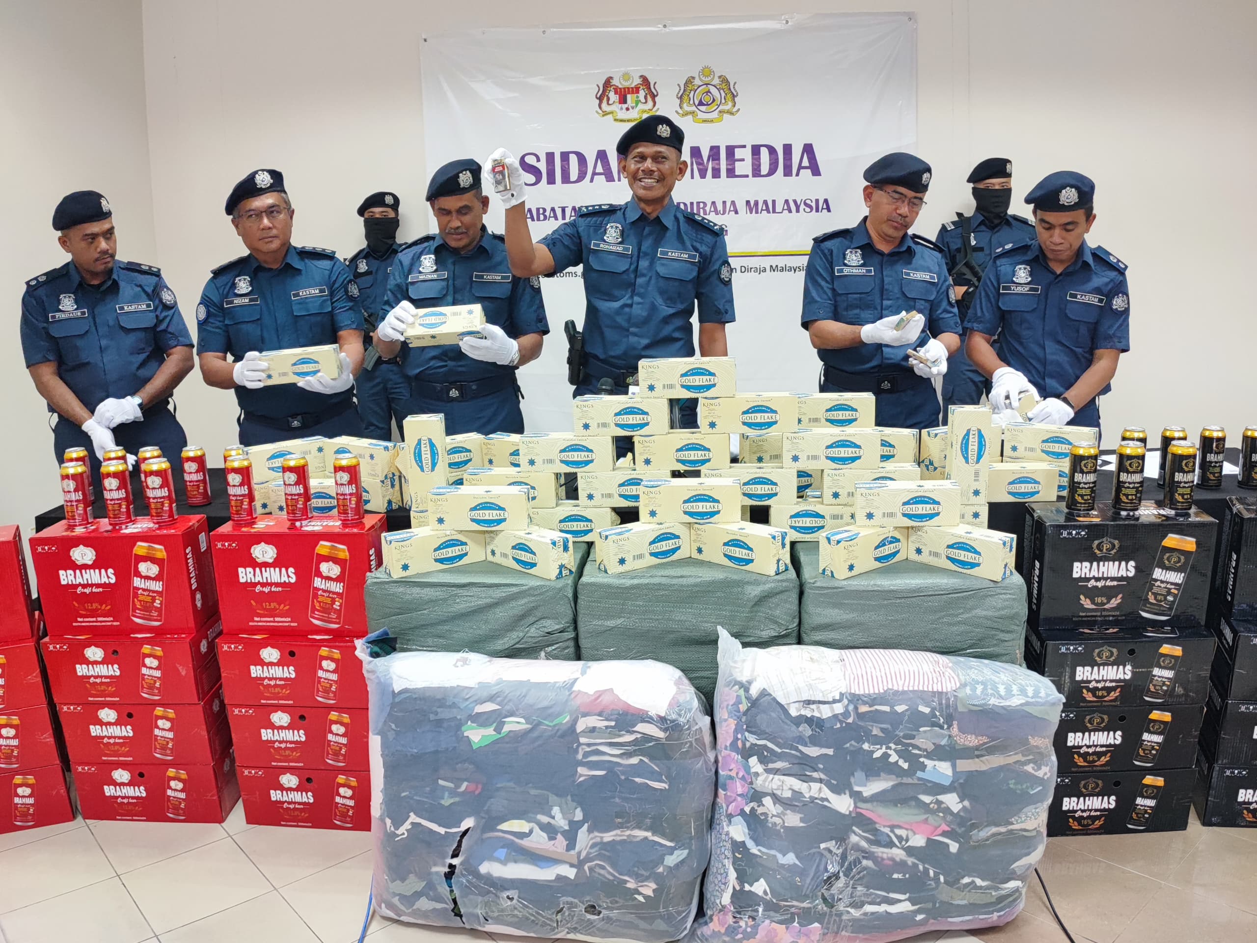 “Hasil pemeriksaan yang dibuat kira-kira pukul 11.20 pagi itu, JKDM menjumpai karton-karton rokok terbabit yang dicampurkan bersama 175 karton pakaian lusuh dan terpakai.