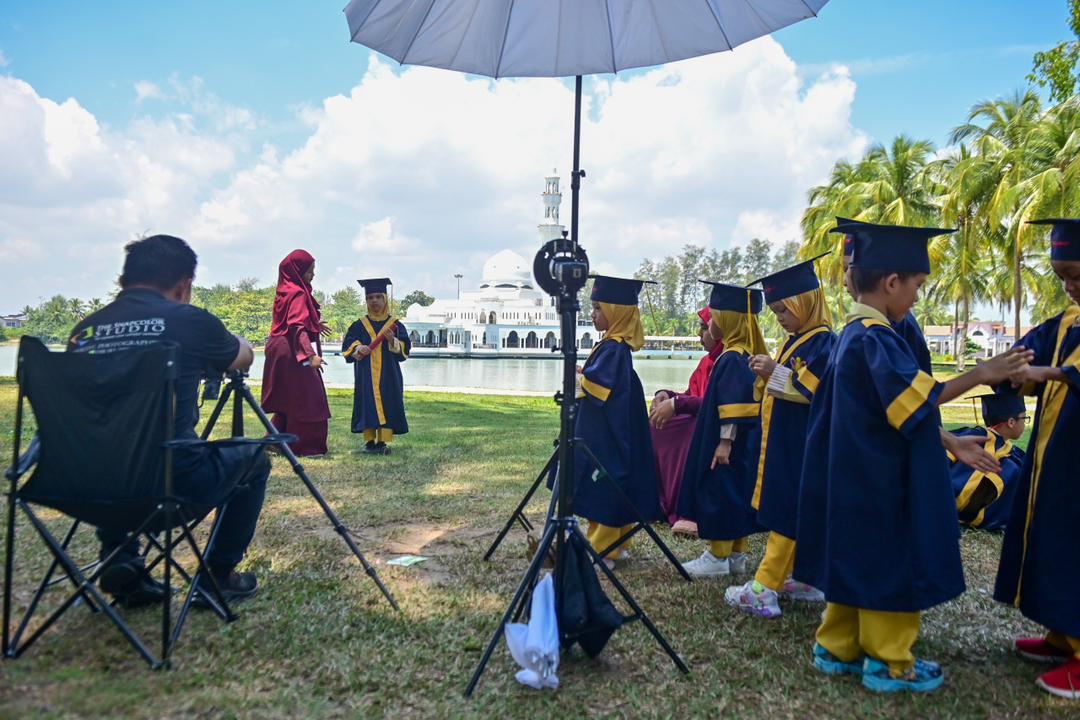 KUALA TERENGGANU: Jika lazimnya menyaksikan penuntut universiti merakam gambar kenangan graduasi lengkap dengan jubah dan topi konvokesyen, namun mencipta kelainan apabila pelajar cilik berusia enam tahun pula diraikan dalam sesi fotografi di luar kawasan atau secara outdoor. Seramai 58 murid dari Tadika Little Caliphs Padang Midin, di sini tampil bergaya dengan persalinan lengkap konvokesyen, memilih kawasan lapang berhampiran Masjid Tengku Tengah Zaharah Kuala Ibai, di sini menjadi set fotografi mereka.…