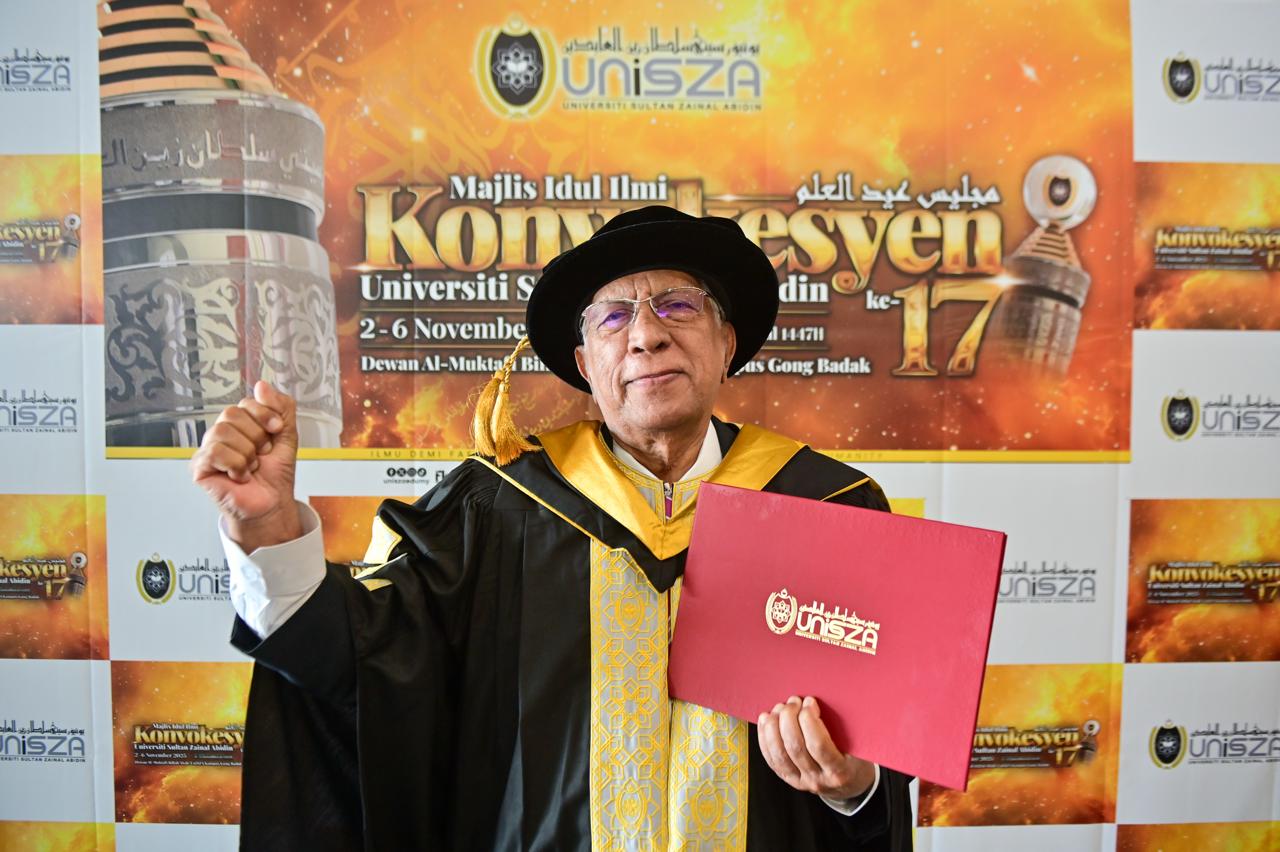 KUALA NERUS: Seorang peguam berpengalaman, Datuk Dr. Victor Isaacs, 85, mencipta detik bersejarah apabila menamatkan pengajian peringkat Doktor Falsafah (PhD) selepas enam tahun menimba ilmu di Universiti Sultan Zainal Abidin (UniSZA).
