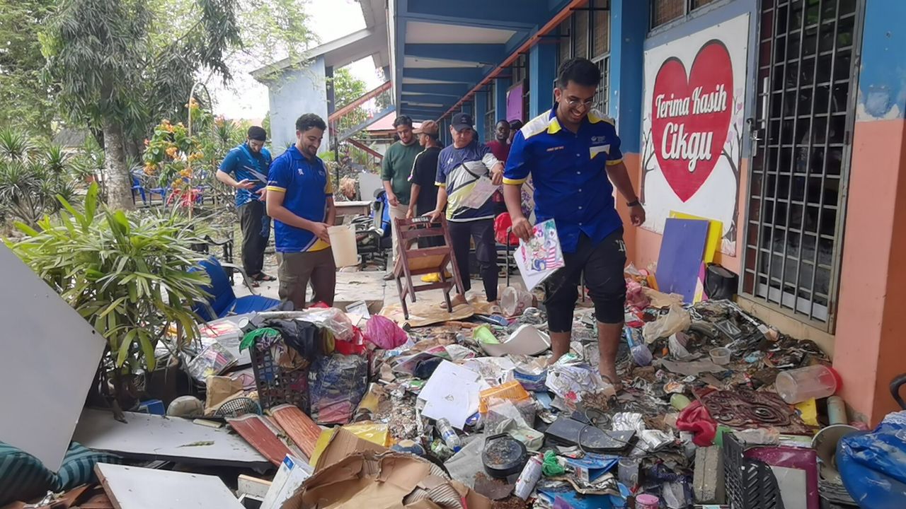 Beliau berkata, sukarelawan terlibat membantu membersihkan kawasan sekolah khususnya bilik-bilik darjah yang terjejas.