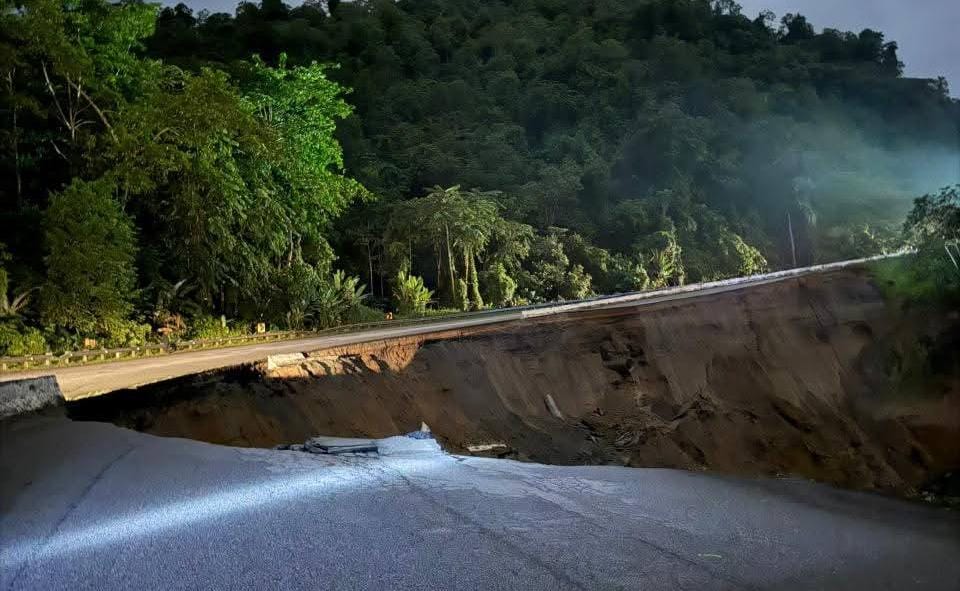 GUA MUSANG: Pergerakan aliran air bawah tanah dipercayai menjadi punca kejadian jalan runtuh di Kilometer 45, Jalan Gua Musang-Lojing dekat Pos Blau di sini, tengah malam semalam. Dalam kejadian kira-kira pukul 12 tengah malam itu, sebahagian besar jalan di laluan terbabit runtuh menjadi seperti kawah besar sehingga terpaksa ditutup bagi semua kenderaan termasuk motosikal. Ketua Polis Daerah Gua Musang, Superintenden Sik Choon Foo berkata, runtuhan tanah melibatkan kawasan jalan sepanjang…