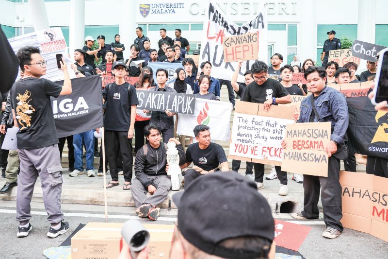 KUALA LUMPUR: Sekumpulan mahasiswa Universiti Malaya bertindak membawa replika keranda buatan dan batu nisan sebagai simbolik bantahan pelaksanaan Hukuman Tatatertib Terus dalam demonstrasi aman di Universiti Malaya (UM). Situasi yang pada awalnya dalam keadaan terkawal bertukar menjadi tegang seketika apabila berlaku pergelutan kecil antara peserta dan polis bantuan UM ketika keranda tersebut mula diusung keluar untuk berarak. Timbalan Presiden Kesatuan Mahasiswa Universiti Malaya (KMUM), Gan Zi Xiang berkata, tindakan itu…
