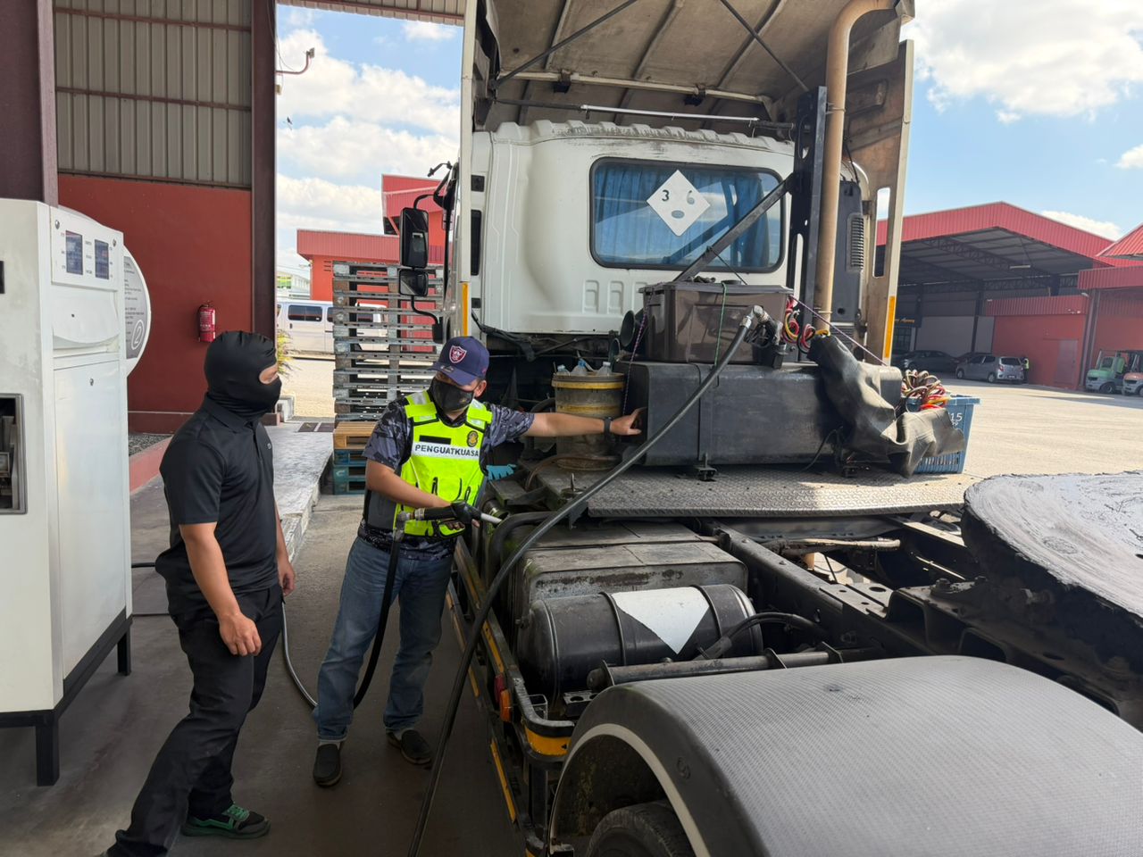 “Dua daripada motor lori berkenaan didapati sedang menjalankan aktiviti pengisian yang disyaki minyak diesel ke dalam tangki asal kenderaan serta tangki tambahan.