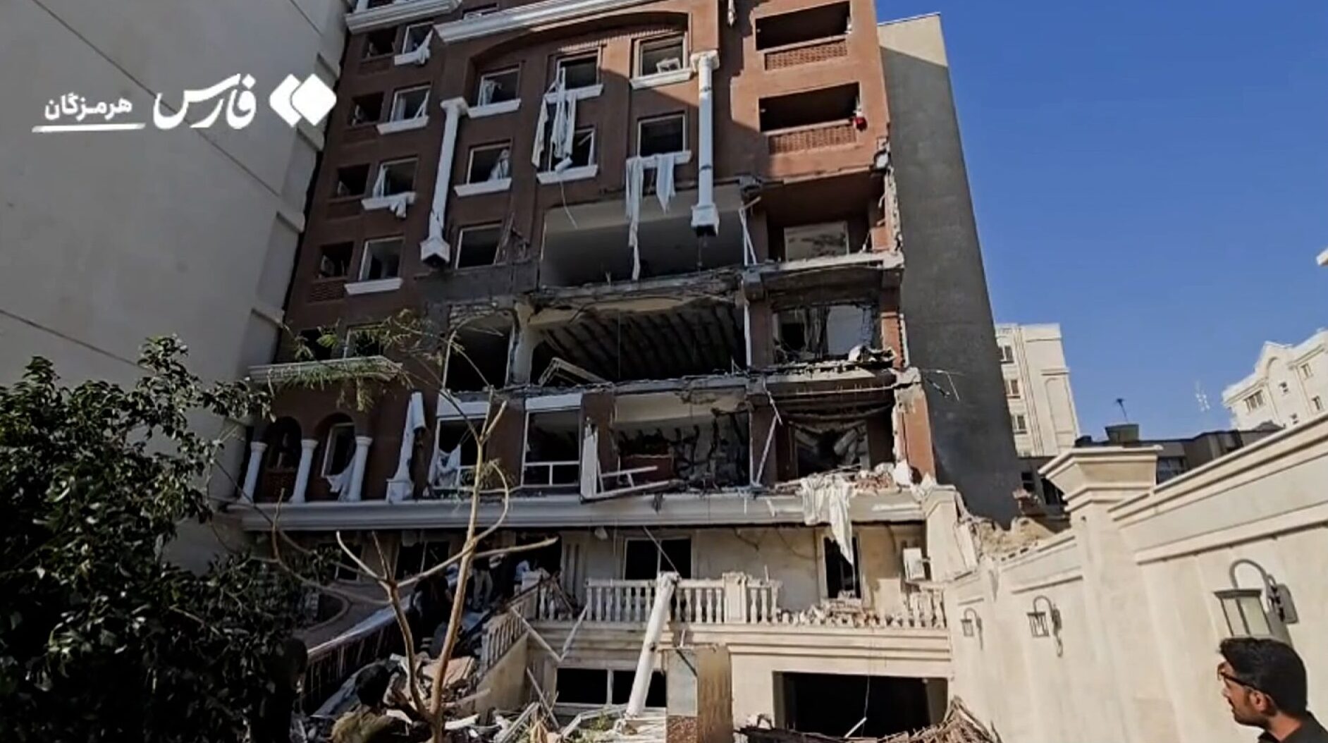 Satu video yang dimuat naik di media sosial menunjukkan orang ramai berdiri di celah runtuhan dan kenderaan yang rosak di hadapan sebuah bangunan yang mengalami kerosakan susulan letupan itu.