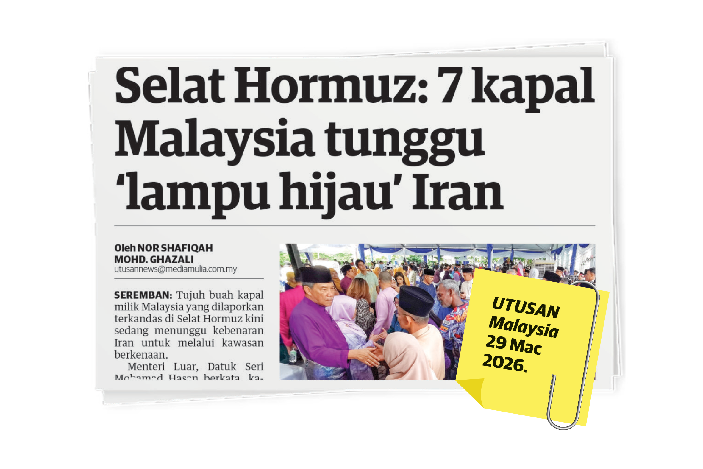 PETALING JAYA: Tujuh buah kapal milik Malaysia dengan empat daripadanya sarat membawa muatan minyak mentah yang kini terkandas di Selat Hormuz sudah mendapat kebenaran daripada kerajaan Iran untuk meneruskan pelayaran pulang ke tanah air. Bagaimanapun, buat masa ini, kesemua kapal itu yang dinaiki 282 orang anak kapal warganegara Malaysia itu masih lagi menunggu masa sesuai sebelum dapat meneruskan pelayarannya melalui Selat Hormuz. Setiausaha Eksekutif Kesatuan Kebangsaan Pelaut-Pelaut Semenanjung Malaysia (NUSPM),…