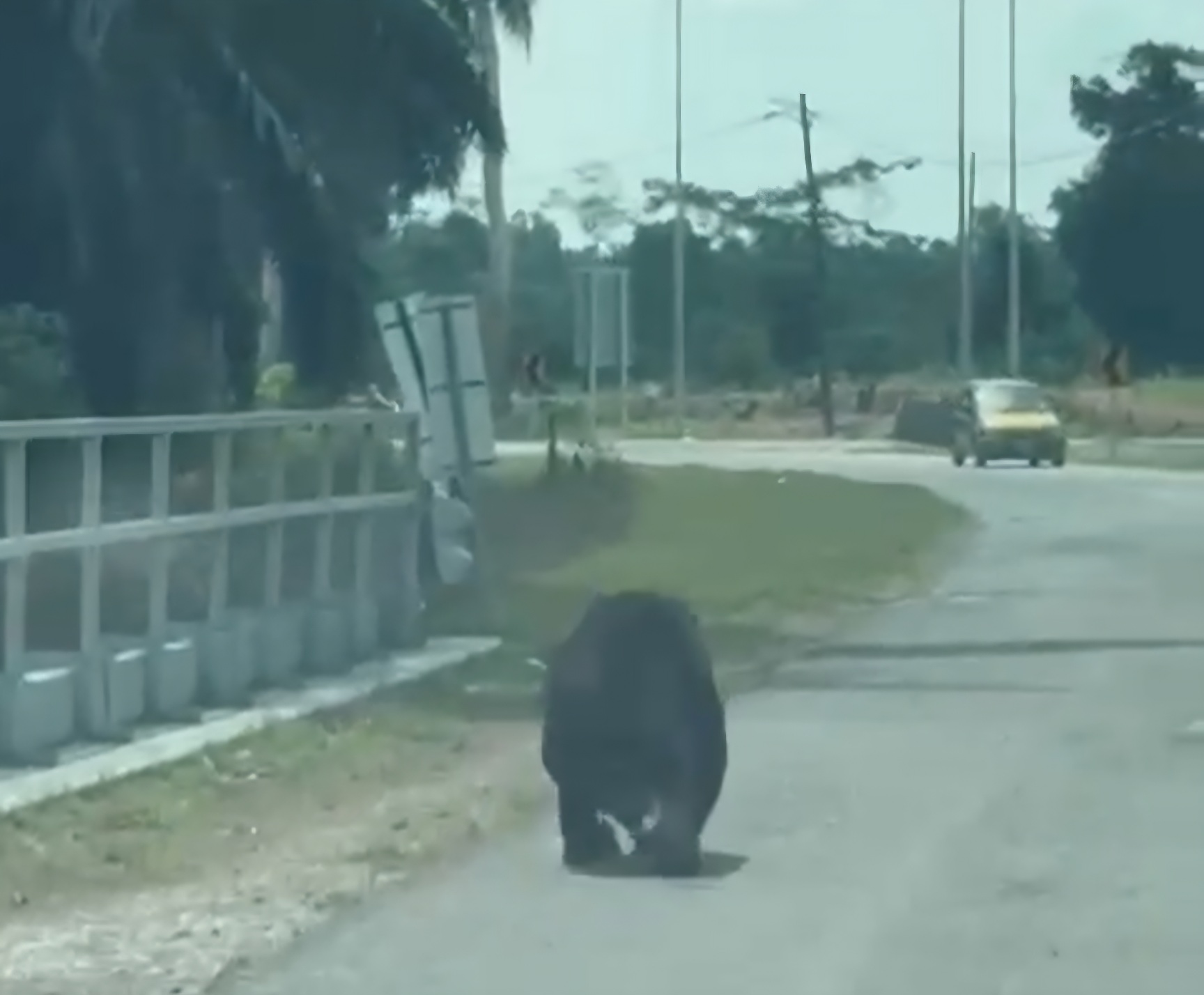 “Beruang liar ini pada mulanya lari di atas jalan raya kemudian menyusup semula ke dalam semak berdekatan sekolah apabila mendengar suara manusia menjerit.