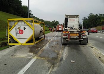 Lori tangki bawa bahan kimia lebih 24 tan terbalik di PLUS