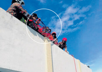 Pelatih payung terjun tersangkut pada kubah masjid