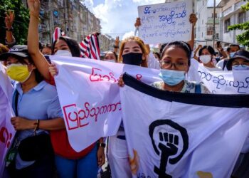 Penunjuk perasaan anti-rampasan kuasa protes di Yangon