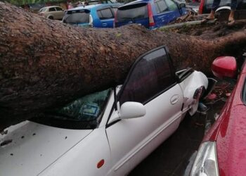 Bumbung flat tercabut diterbangkan ribut, pokok terbalik hempap kereta