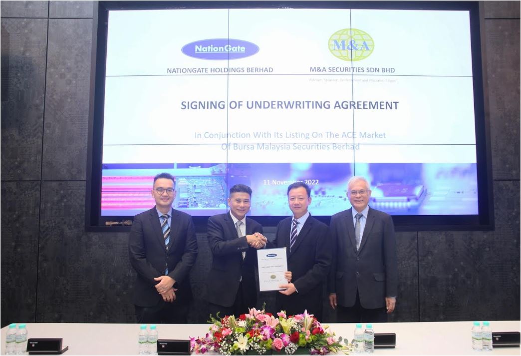 PETALING JAYA: Penyedia perkhidmatan pembuatan elektronik (EMS), NationGate Holdings Berhad (NationGate) menandatangani perjanjian penajajaminan dengan M&A Securities Sdn. Bhd. (M&A Securities) untuk penyenaraiannya di Pasaran ACE Bursa Malaysia Securities Berhad (Bursa Securities). Tawaran awam permulaan (IPO) itu terdiri daripada terbitan awam sebanyak 435.5 juta saham baharu dalam NationGate dan tawaran untuk jualan sebanyak 290.4 juta saham sedia ada. Menurut kenyataan NationGate, selaras dengan perjanjian itu, M&A Securities akan menaja jamin…