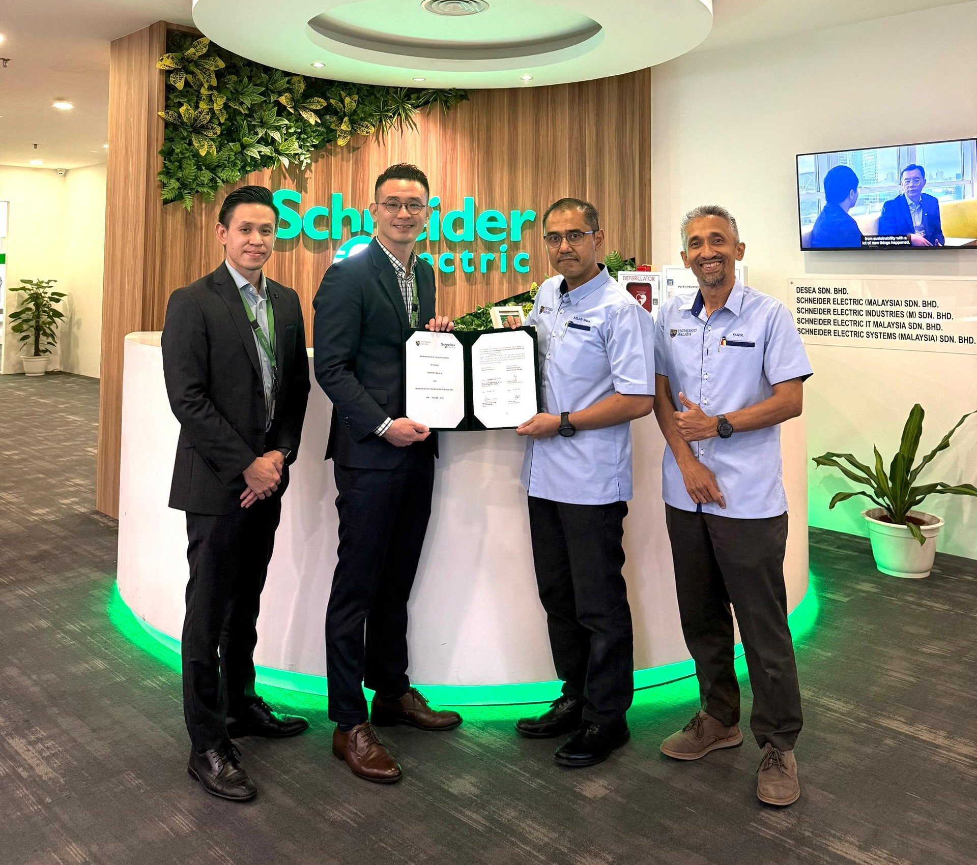 MoU tersebut ditandatangani oleh Presiden Negara Schneider Electric Malaysia, Eugene Quah dan Naib Canselor UM, Prof. Datuk Seri Ir. Dr. Noor Azuan Abu Osman.