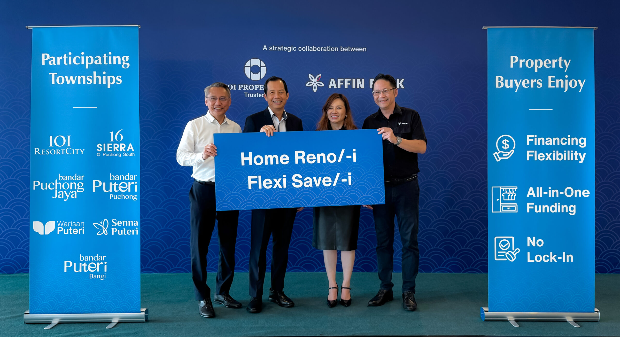 PETALING JAYA: IOI Properties Group Berhad (IOIPG) pemaju hartanah pertama yang diumumkan sebagai rakan bagi penyelesaian pembiayaan Affin Home Reno/-i dan Flexi Save/-i untuk hartanah kediaman dan komersial terpilih di Lembah Klang dan Johor.