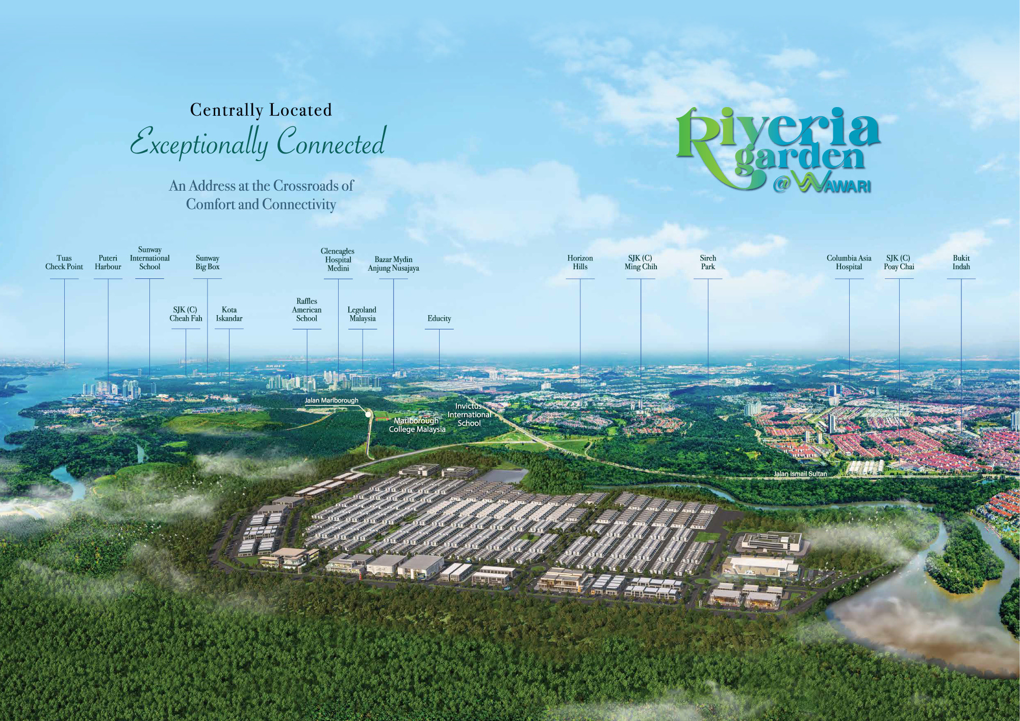 Selain itu, Riveria Garden dikelilingi oleh kemudahan sedia ada termasuk LEGOLAND Malaysia, Kelab Golf Horizon Hills serta institusi kesihatan dan pendidikan swasta terkemuka.