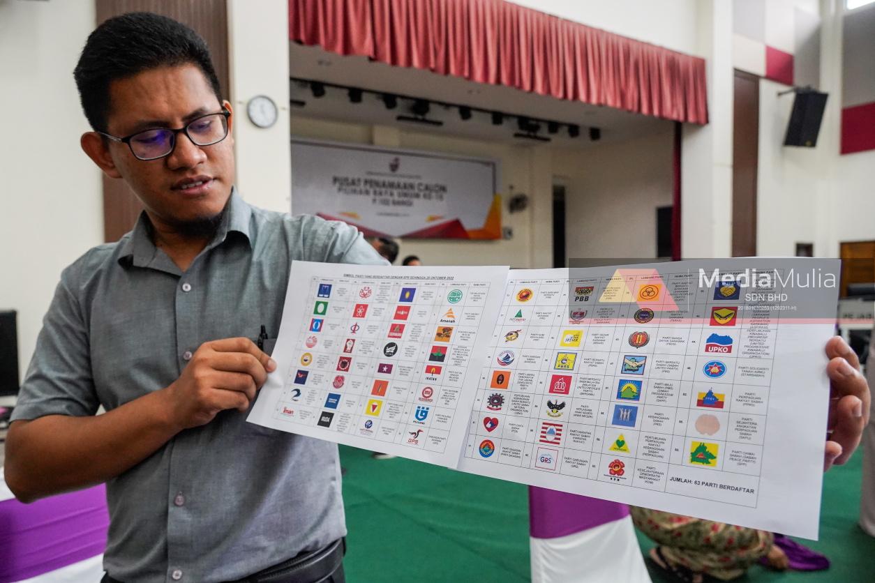 JOHOR BAHRU, 4 November – Petugas Majlis Bandaraya Pasir Gudang (MBPG) Solihin Shamsudin membetulkan rostrum sebagai persiapan menghadapi penamaan calon bagi PRU ke 15 di Stadium Tertutup MBPG, Pasir Gudang disini. UTUSAN/RAJA JAAFAR ALI
