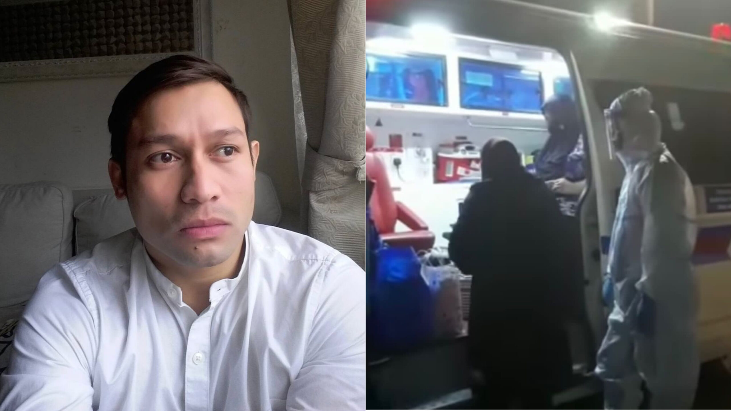 Menerusi perkongsi hantaran video dimuat naik, dapat dilihat kenderaan Kementerian Kesihatan Malaysia (KKM) hadir di kediaman keluarganya untuk dibawa ke Pusat Kuarantin dan Rawatan Covid-19.