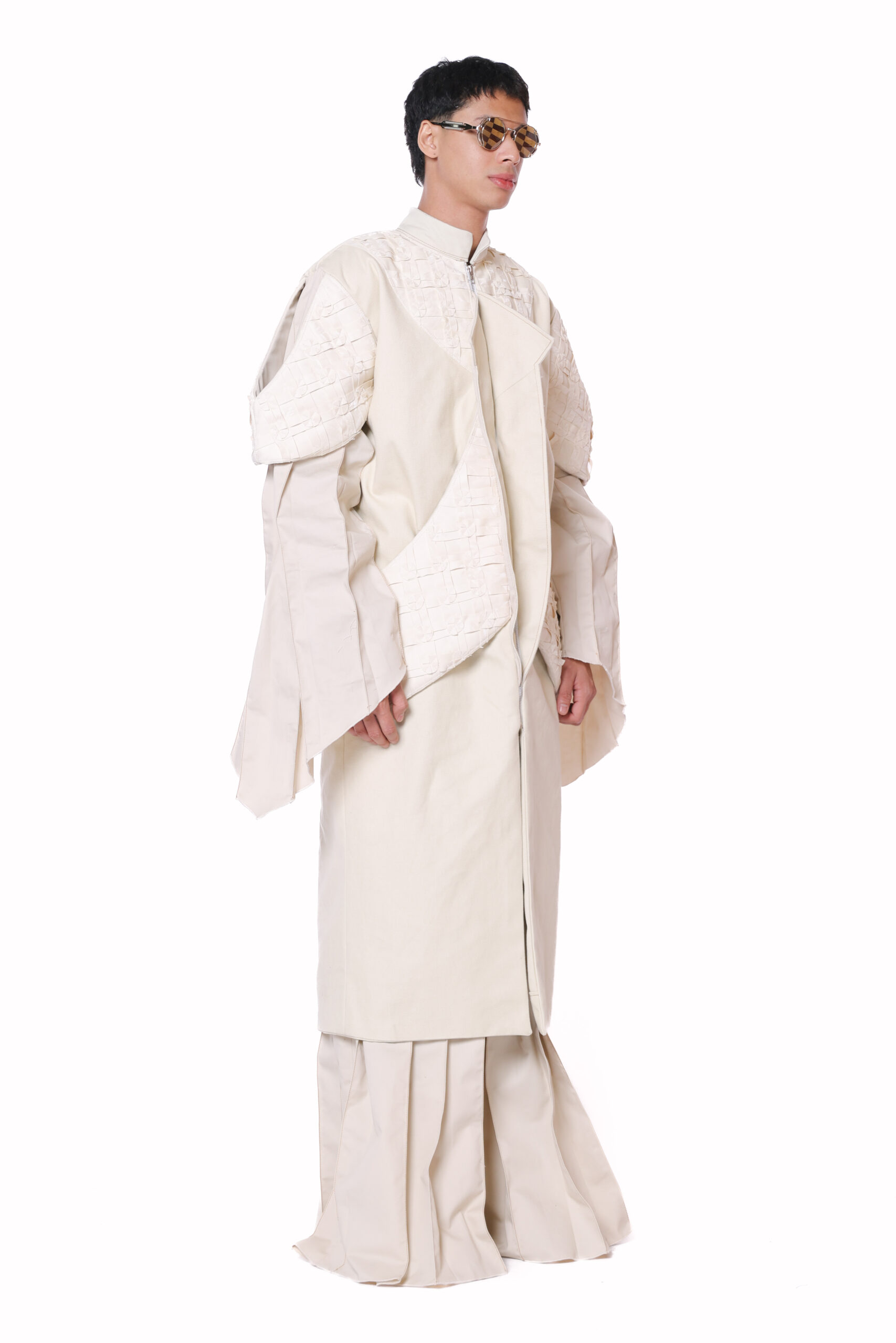 Koleksi minggu ini mengambil inspirasi daripada ritual tradisional masyarakat Lundayeh di Sabah, Nui Ulung Buayeh yang melambangkan keberanian dan kekuatan pahlawan. Dahulu ia diraikan selepas ekspedisi memburu kepala, kini dihidupkan semula melalui sentuhan moden oleh graduan Sarjana Muda Reka Bentuk Fesyen dari Universiti Teknologi Mara (UiTM) Shah Alam. Nurul Iman Afifah Mohamad Taufek bijak menterjemahkan semangat dan simbol buaya Lundayeh ke dalam rekaan yang relevan di pentas moden. Potongan fabrik…
