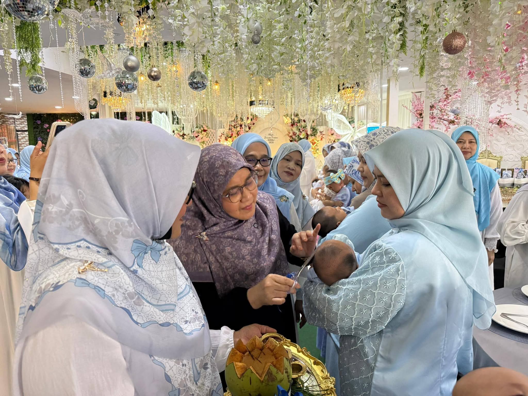 Seramai 12 ibu muda diraikan kali ini, mewakili enam bayi lelaki dan enam bayi perempuan. Setiap bayi didodoikan secara simbolik di atas buaian kecil, tanda kesyukuran keluarga serta doa agar anak membesar menjadi insan soleh dan berjaya.