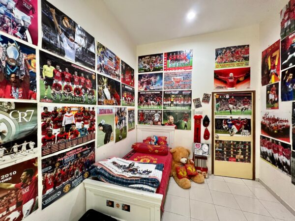 Bahkan, pelakon itu turut mempunyai sebuah bilik tidur yang dihiasi penuh dengan barangan Manchester United termasuklah cadar katil, replika stadium dalam bentuk lego dan banyak lagi.
