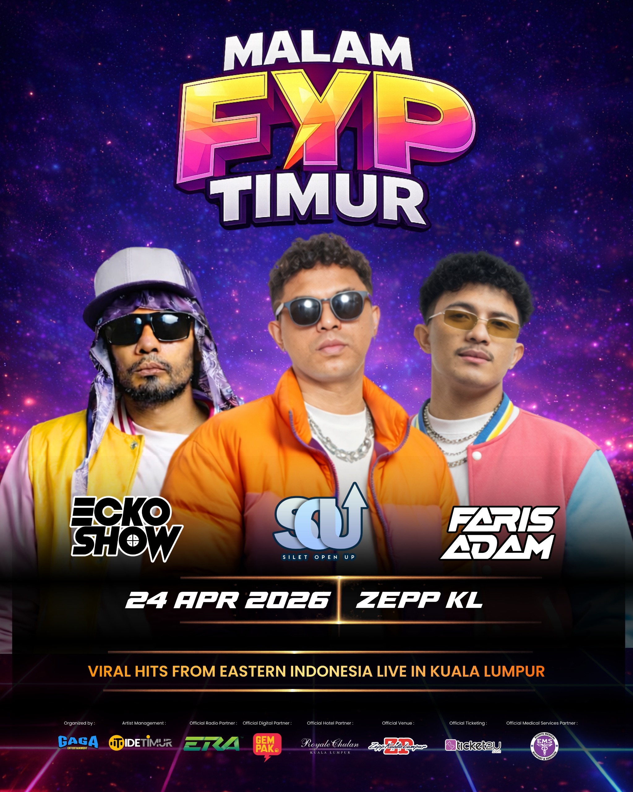 Fenomena muzik dari Timur Indonesia bakal menghangatkan pentas ibu kota menerusi Malam FYP Timur, konsert julung kali yang akan berlangsung pada 24 April 2026, jam 8.30 malam di Zepp Kuala Lumpur.