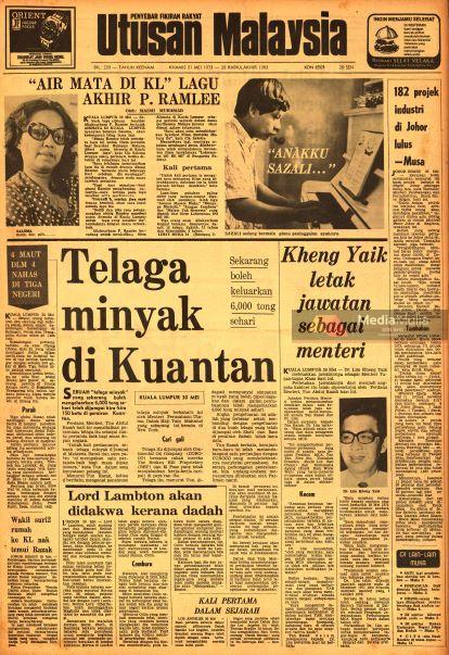 PADA 31 Mei 1973, sebuah telaga minyak yang boleh mengeluarkan 6,000 tong minyak sehari dijumpai kira-kira 241 kilometer di perairan Kuantan. Menurut Perdana Menteri, Tun Abdul Razak, ia merupakan yang pertama kali telaga minyak dijumpai di Malaysia Barat.