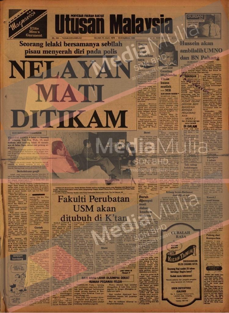 Dapatkan maklumat lanjut di Pusat Maklumat dan Arkib Media Mulia Sdn Bhd. Sebarang urusan pertanyaan atau pembelian bahan-bahan arkib sila hubungi kami di nombor telefon: 03-74556428 atau e-mel ke: [email protected]