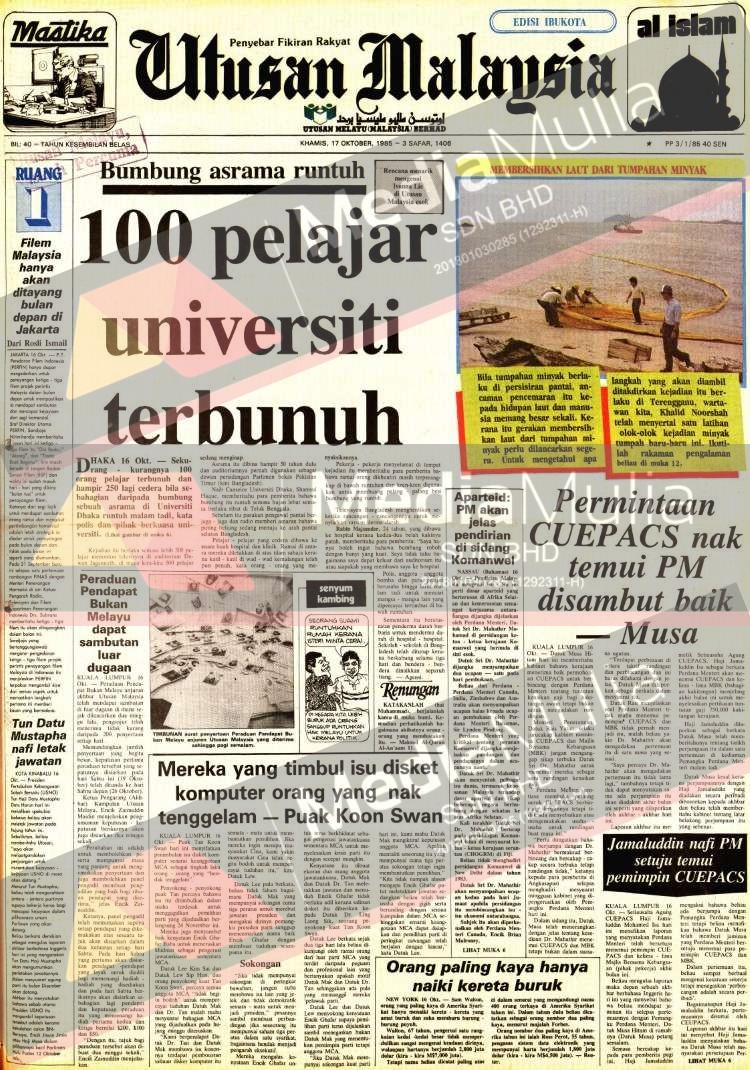 Dapatkan maklumat lanjut di Pusat Maklumat dan Arkib Media Mulia Sdn Bhd. Sebarang urusan pertanyaan atau pembelian bahan-bahan arkib sila hubungi kami di nombor telefon: 03-74556428/019-3330317 atau e-mel ke: [email protected]