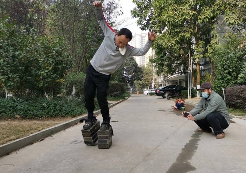 Lapor Oddity Central, Zhang Enshun, 42, dari Bandar Yulin di wilayah Guangxi, China menjalani latihan senaman memakai `kasut besi’ itu sejak lima bulan lalu.