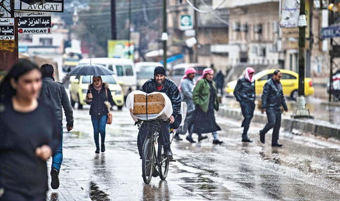 Sebuah video menunjukkan puluhan lelaki berhimpun di jalanan ketika cuaca hujan sambil melaungkan sokongan terhadap rejim pemimpin Syria, Bashar al-Assad.