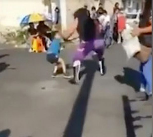 Rakaman video yang tular menunjukkan Cruz dihampiri kanak-kanak tersebut yang cuba memegang lehernya.