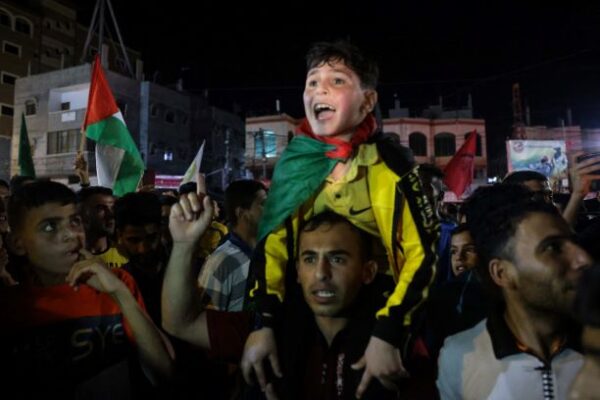 Penduduk yang gembira dengan pengumuman itu memenuhi jalan-jalan utama di seluruh Gaza sambil mengibarkan bendera Palestin.