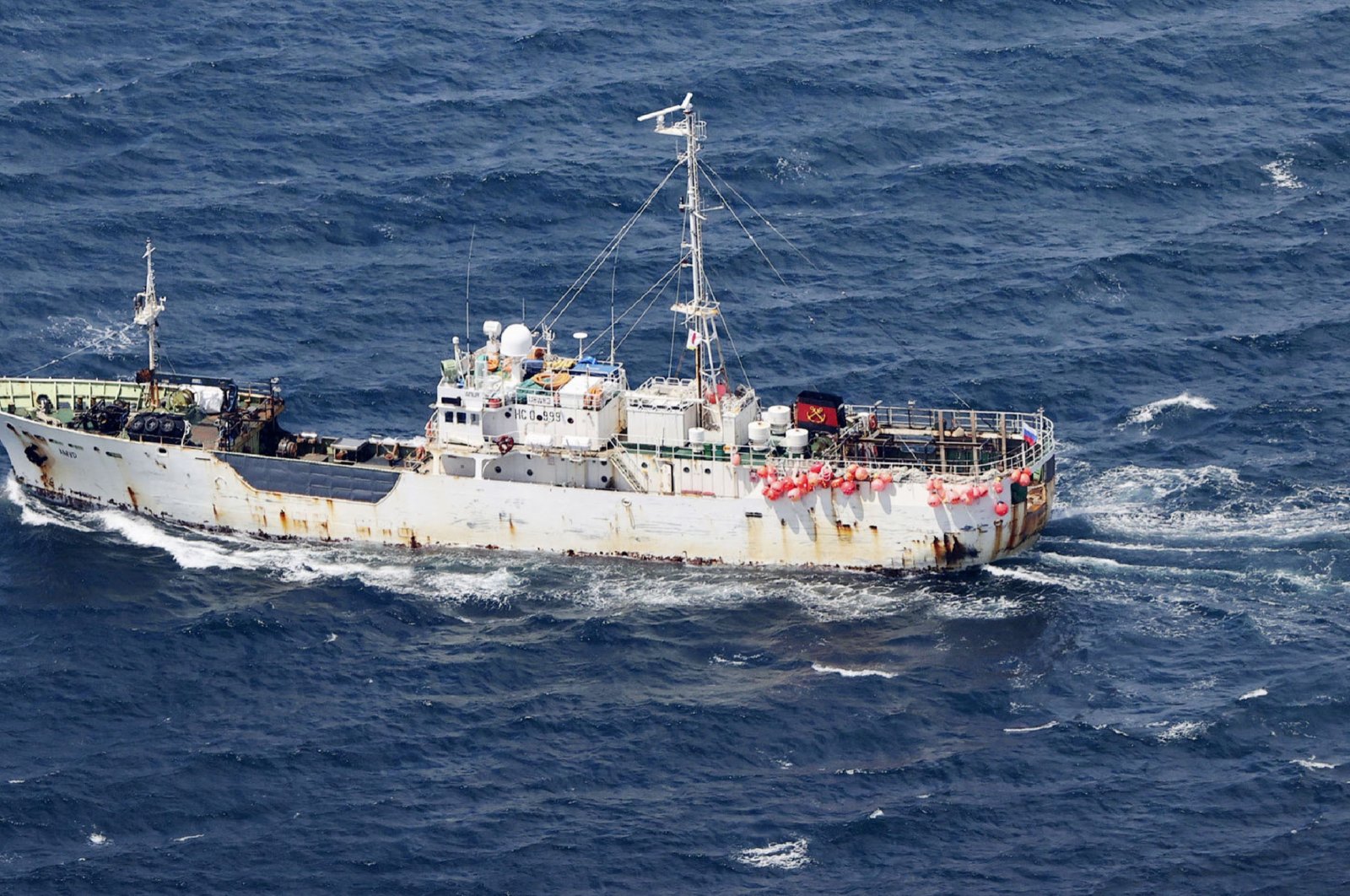 Menurut pengawal pantai Jepun, pihaknya dimaklumkan bahawa kapal kargo Rusia menemukan lima anak kapal nelayan di perairan tersebut.