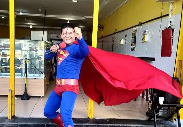 Lelaki itu mengenakan pakaian lengkap Superman berwarna merah dan biru seolah-olah ingin membuktikan dia mempunyai ‘kuasa’ luar biasa.
