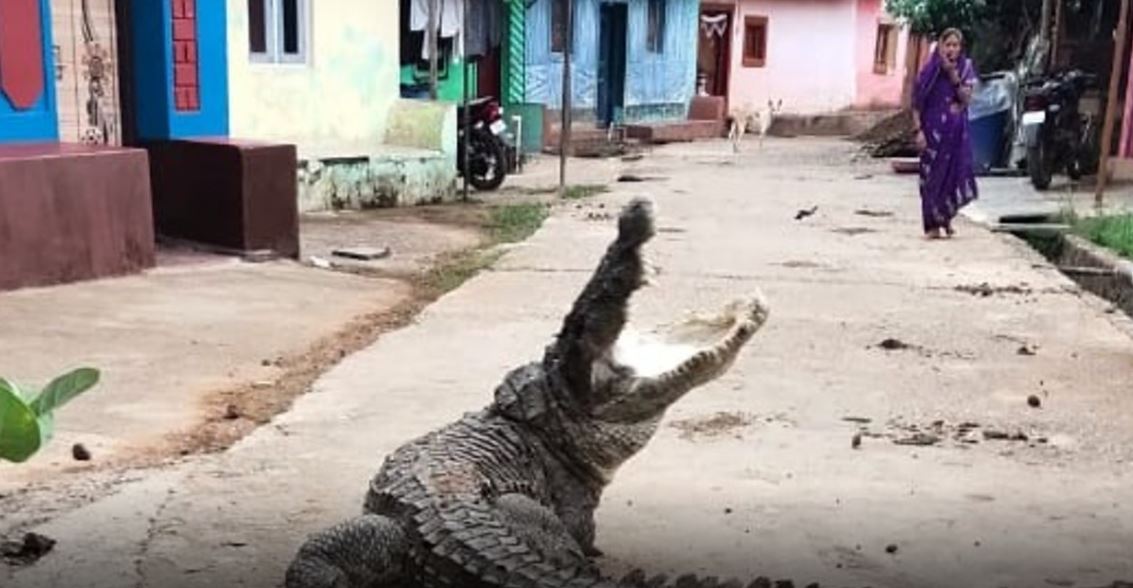 KARNATAKA: Penduduk kampung di Karnataka dikejutkan dengan kehadiran buaya dari sungai berdekatan.