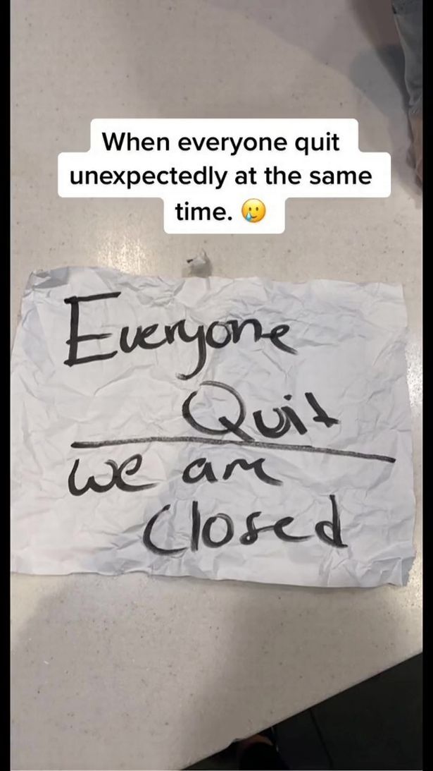 Video itu menunjukkan sekeping nota yang bertulis ‘semua orang sudah berhenti dan kami terpaksa tutup operasi’.