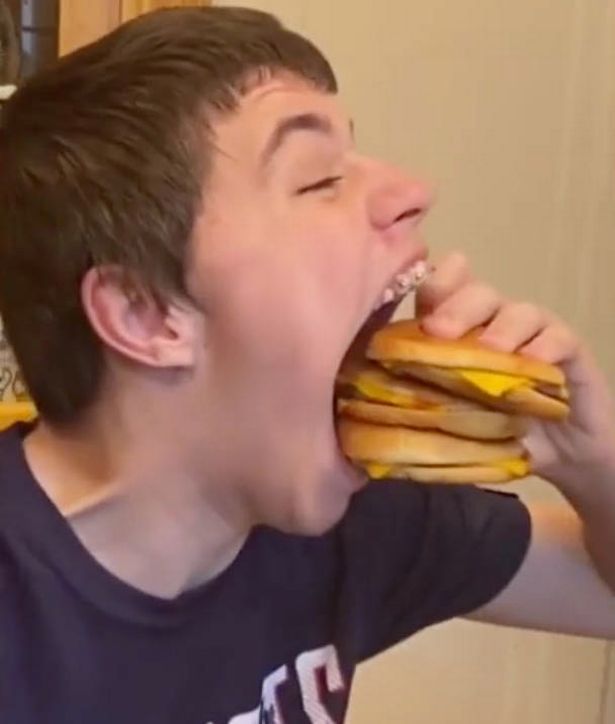 Sebuah lagi klip video memaparkan remaja itu dapat memasukkan burger besar secara sekali gus di dalam mulutnya.