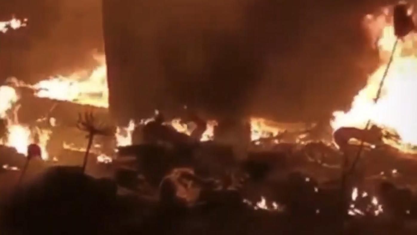 Beberapa video dan imej yang dikongsi dalam media sosial menunjukkan api menjulang tinggi di lokasi kejadian.