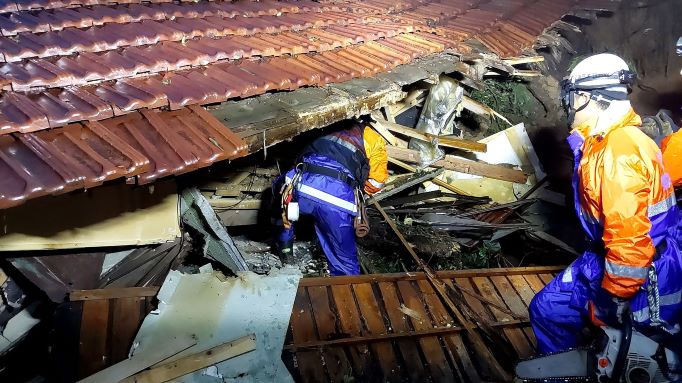 Di bandar Unzen, selatan Nagasaki, dua rumah ditimpa tanah runtuh yang mengakibatkan seorang wanita berusia 50 tahun dikhuatiri mati.