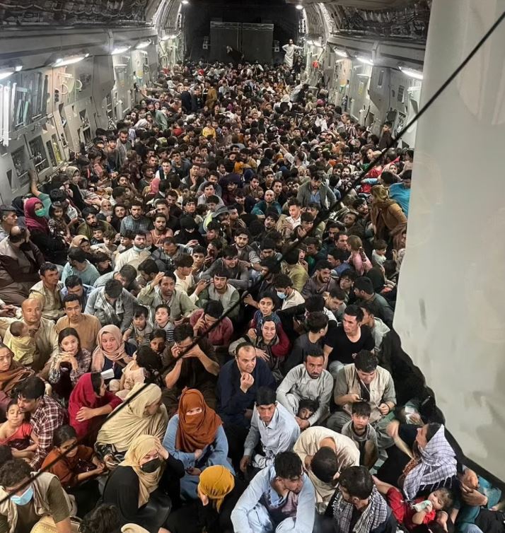 Gambar yang diperoleh Defence One menunjukkan semua rakyat Afghanistan berhimpit-himpit memenuhi pesawat kargo tersebut yang boleh membawa muatan seberat 85.5 tan atau dalam keadaan selesa, 150 anggota tentera.