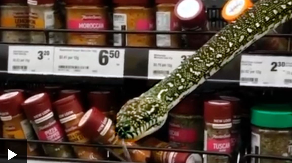 SYDNEY: Sebuah pasar raya di bandar ini menjadi gempar apabila seekor ular sawa berada di sebuah rak makanan dengan kepalanya menghulur keluar.