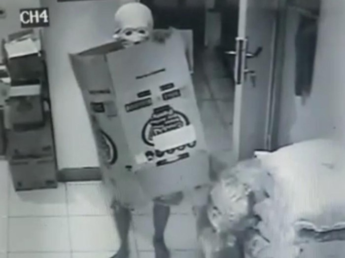 BANTEN: Seorang lelaki memecah masuk sebuah pasar raya mini di Jalan Gunung Karang, Pandeglang, dengan memakai kotak dan topeng muka tengkorak bagi melindungi identitinya.