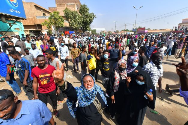 Ibu negara, Khartoum dan bandar Omdurman dilimpahi lautan manusia yang menghalang jalan dan melaungkan sokongan terhadap pemerintahan awam.