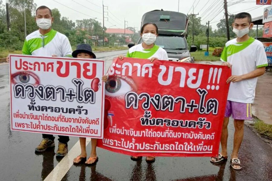Keluarga itu meletakkan iklan di hadapan rumah mereka bagi menawarkan mata, buah pinggang atau organ lain untuk dijual bagi mendapatkan 860,725 baht (RM107,670) menyelamatkan aset mereka.