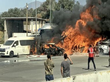 Video yang dikongsi dalam media sosial menunjukkan beberapa kenderaan terbakar, manakala sebahagian yang lain remuk.
