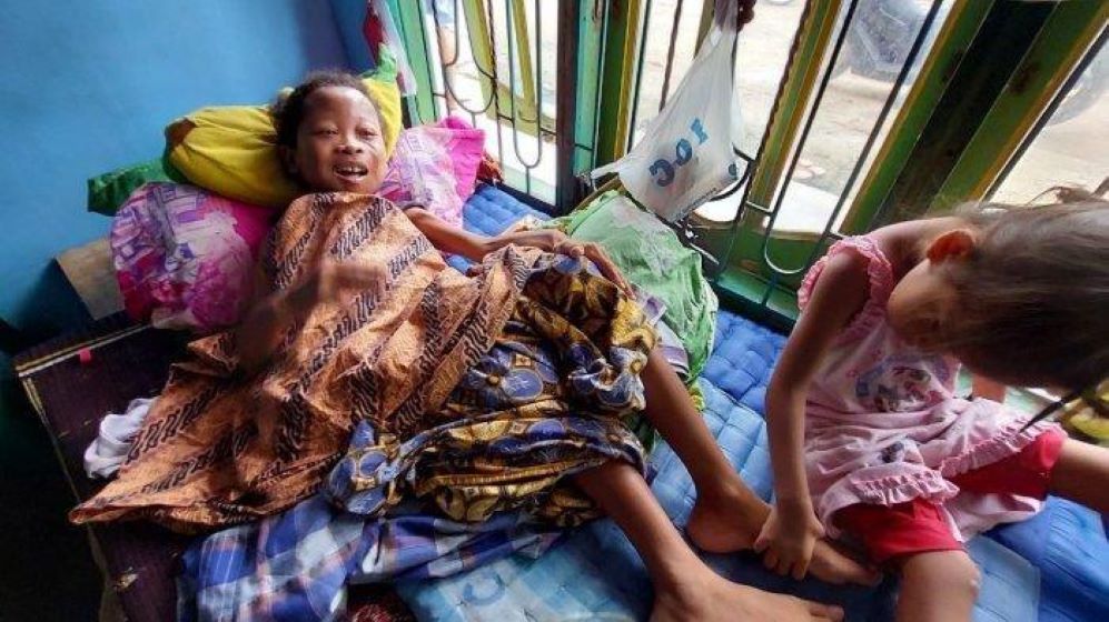 Ketika dikunjungi wartawan, wanita itu hanya terbaring di atas katil.