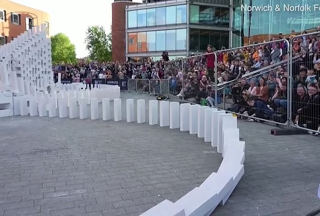 NORWICH: Lebih 7,000 domino tumbang melintasi kawasan di sekitar bandar Norwich sempena meraikan sebuah acara perasmian festival seni ke-250.
