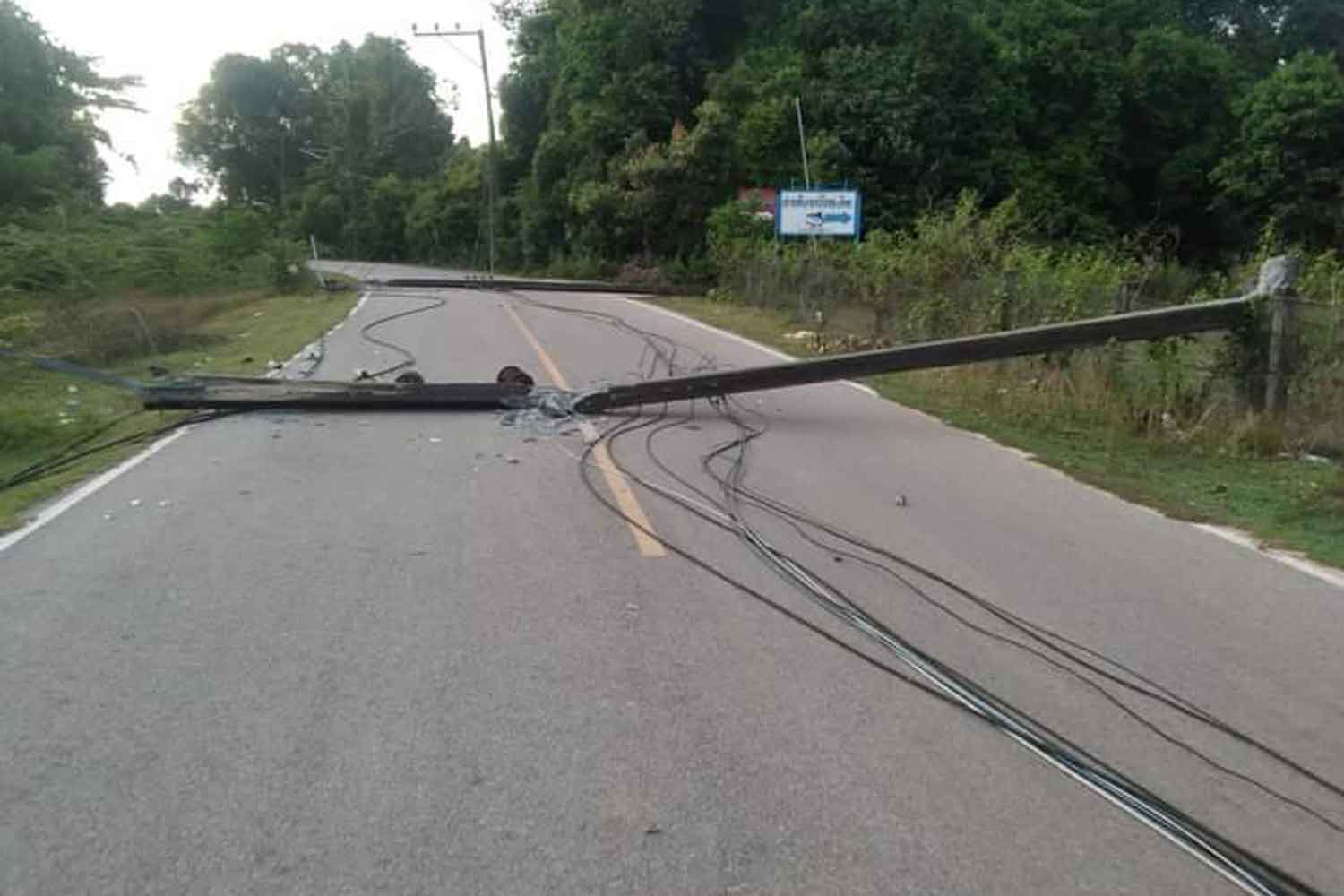 Letupan itu menyebabkan tiang elektrik tersebut tumbang di Jalan Tabapoyoh-Hua Khlong sehingga menghalang lalu lintas dan menyebabkan bekalan elektrik terputus di Praiwan, Jeh Hay dan Hua Khlong, lapor Bangkok Post.