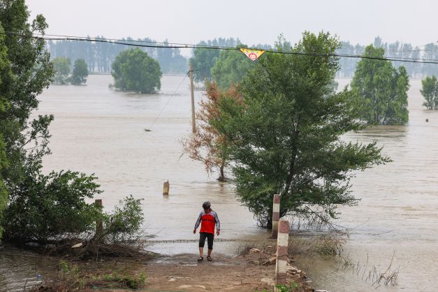 Banjir berlaku ketika China dilanda musim panas melampau, dengan suhu mencecah 40 darjah celsius di beberapa bandar.