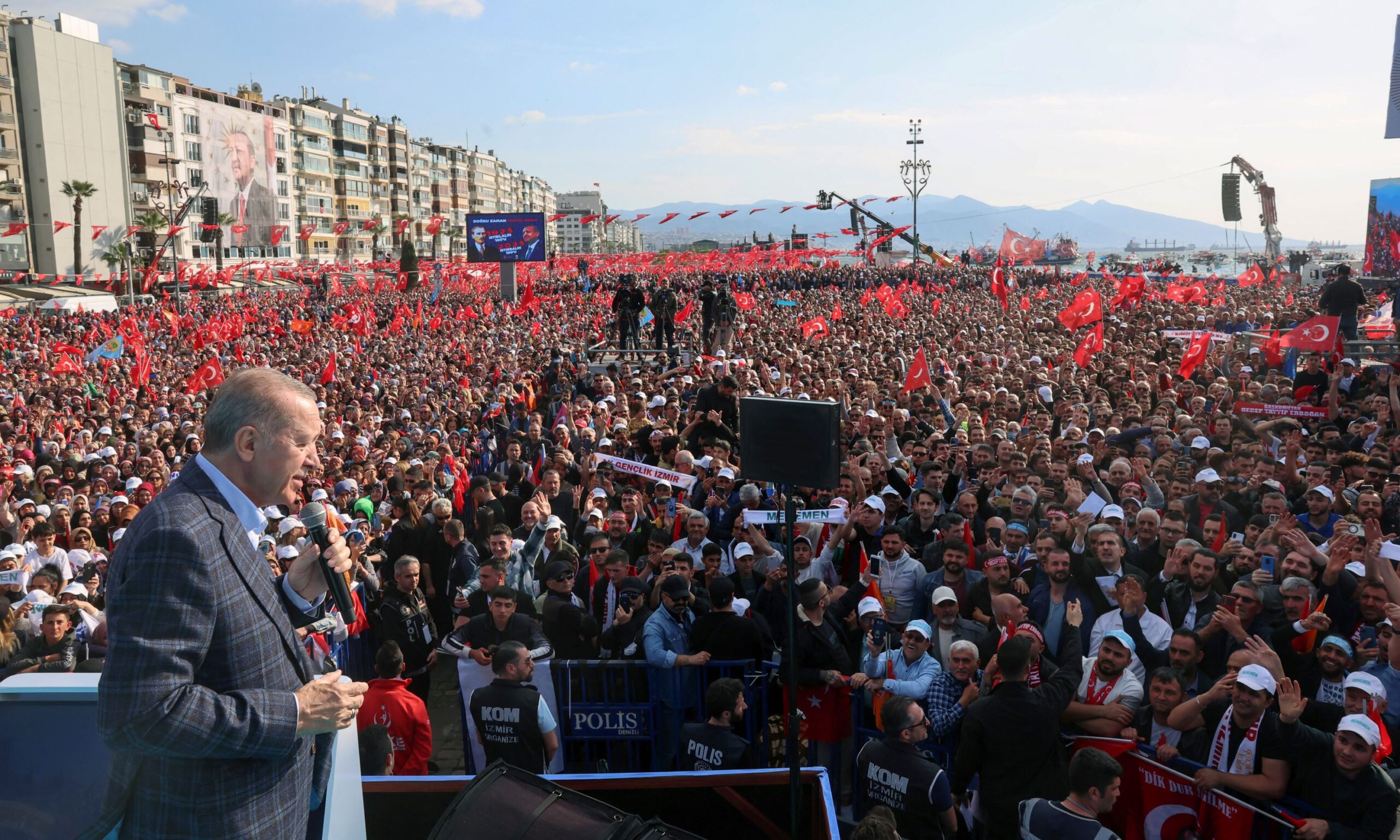 Bekas penjawat awam itu turut mengadakan perhimpunan besar-besaran di sepanjang tambak bandar Aegean yang dikuasai pembangkang di Izmir, di mana Erdogan menarik kumpulan penyokong yang lebih kecil pada perhimpunan Sabtu lalu di lokasi sama.
